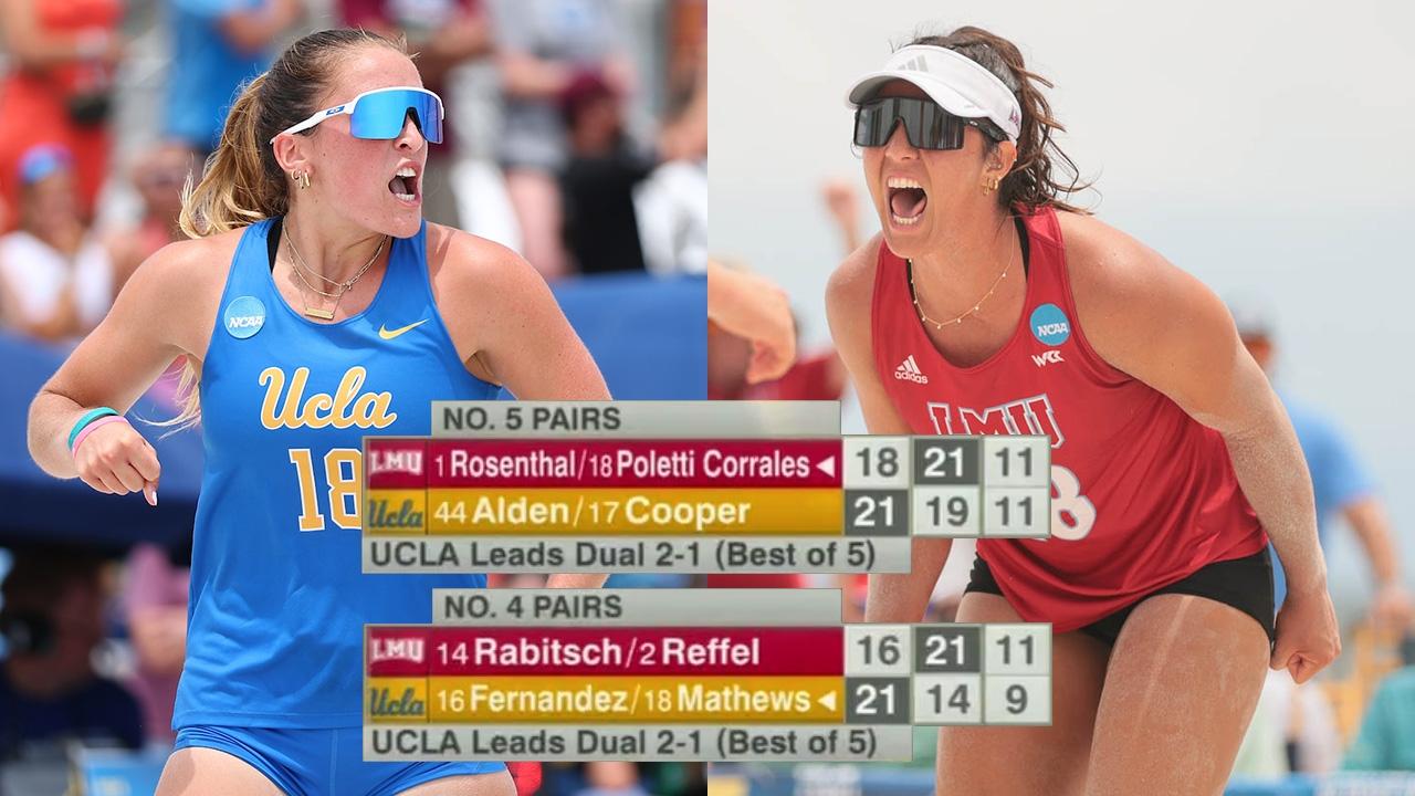 Full finish of LMU-UCLA NCAA beach volleyball semifinal dual