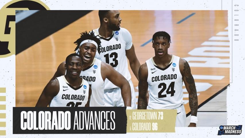Colorado basketball beat Georgetown in the 2021 NCAA tournament on Saturday Colorado beat Georgetown in the 2021 NCAA tournament on Saturday.