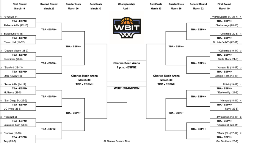 Brigham Young, North Dakota State, Utah and Texas A&M highlight the 32-team field for the 2026 Women’s Basketball Invitation Tournament (WBIT), released today by the WBIT selection committee.