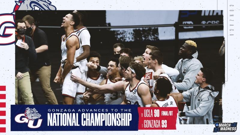 No. 1 seed Gonzaga advanced to the Final Four with an undefeated record and in pursuit of its first-ever national championship. Meanwhile, UCLA, which has won more national titles than any other program in men's basketball history, became just the second No. 11 seed to make a run from the First Four to the Final Four, as the Bruins chased an unlikely 12th national championship.