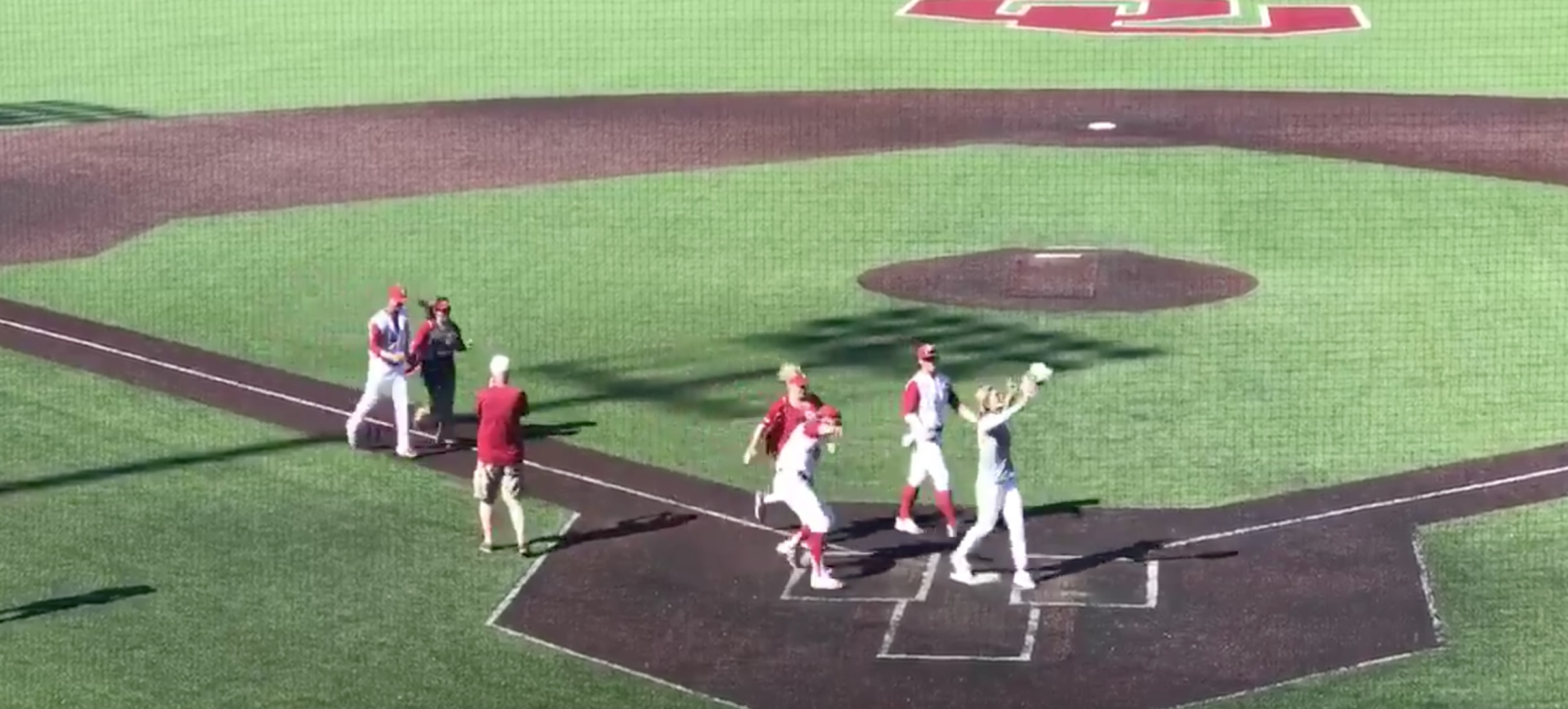Oklahoma celebrates win by running bases with their moms