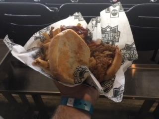 Review: No. 7 hitter. Much like its middle infielder partner, the smoked brisket is an unusual wrinkle to ballpark food that is featured here at TD Ameritrade Park. Topped with fried onions that add a nice crunch, the brisket sandwich is another meal that can go well with either lunch or dinner. Another solid option, this is an excellent second baseman to pair with its pulled pork teammate. You've seen these items in smokehouses before, but at a baseball stadium? That's what makes Omaha special.
