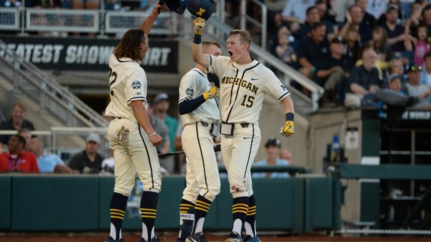 The anthem was sung, the planes roared above TD Ameritrade Park, and the College World Series could begin. “That just kind of gave us chills,” Michigan first baseman Jimmy Kerr would say later, having delivered a two-run triple to help settle the opener. “That’s when it kind of hit us, we’re playing now.” Not only playing, but winning a CWS game, which Michigan hadn’t done since 1983. That sound coming from the stands? The Michigan masses belting out The Victors. In Omaha. Get used to it.