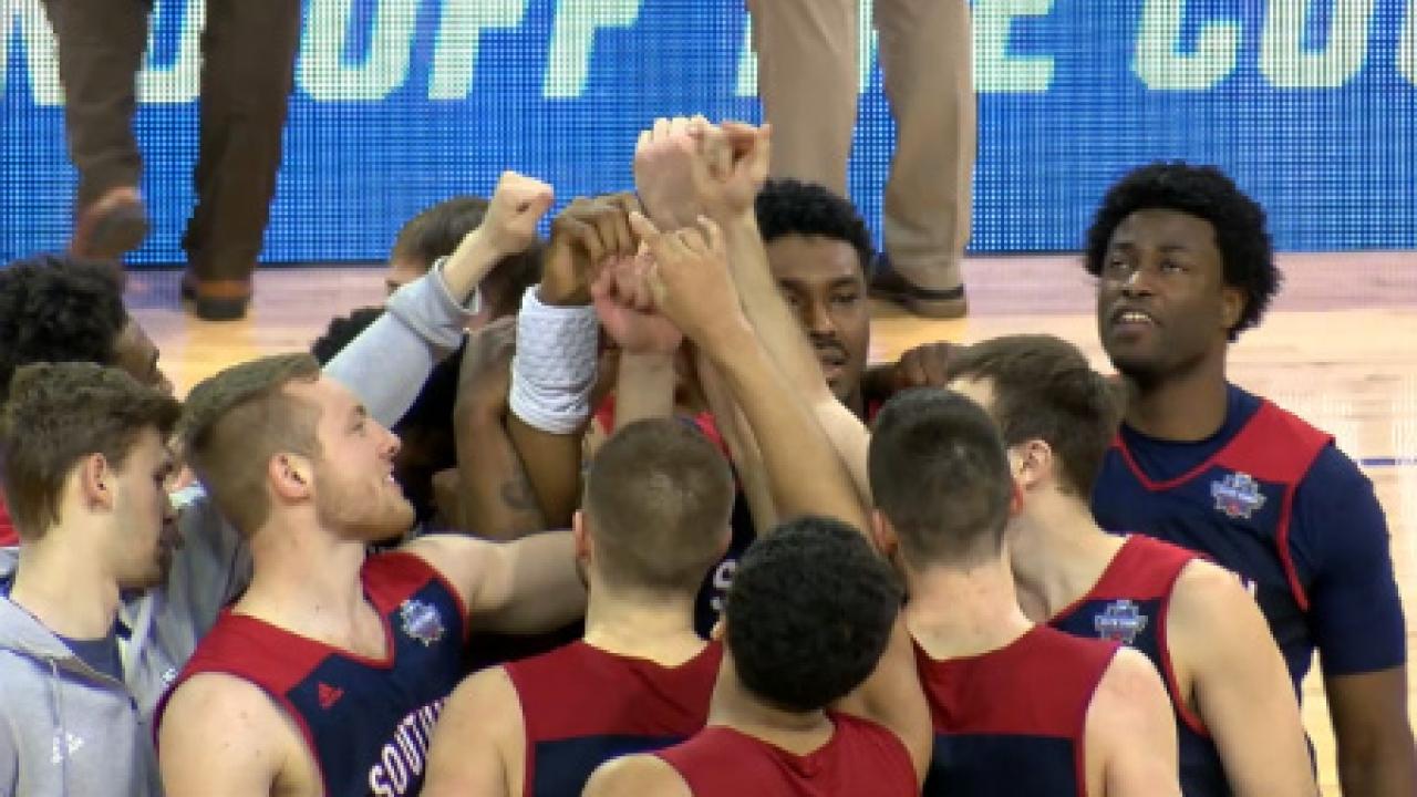 First, No. 5 Saint Anselm took care of a No. 4 Nova Southeastern team that was amid a program record-setting season. "We didn't just break them, we shattered them," head coach Jim Crutchfield said of his team's first NCAA DII tournament appearance. But it was a near record-setting day by Saint Anselm that prevailed. The Hawks hit 16 3-pointers, tied for second-most in Elite Eight history. Sharp-shooter Tim Guers led the way, going 6-for-10 behind the arc, also a top 5 single-game performance in Elite Eight lore.