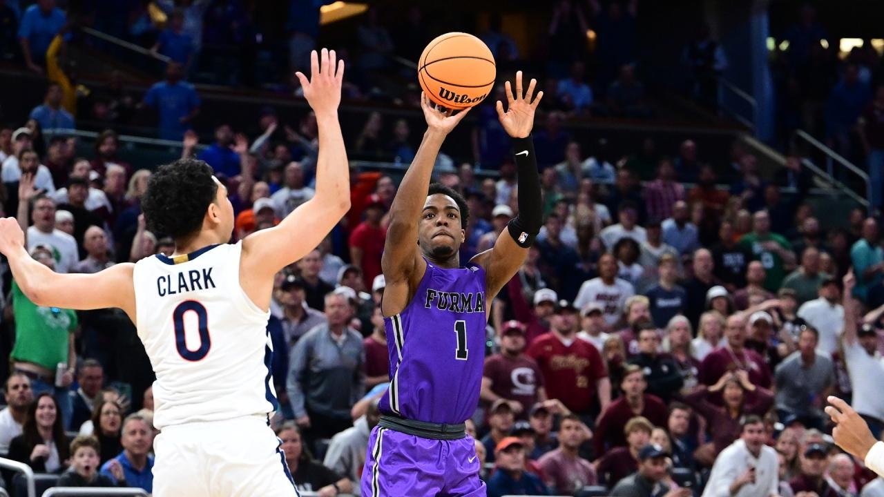 Full final seconds from Furman's stunning first-round upset over Virginia