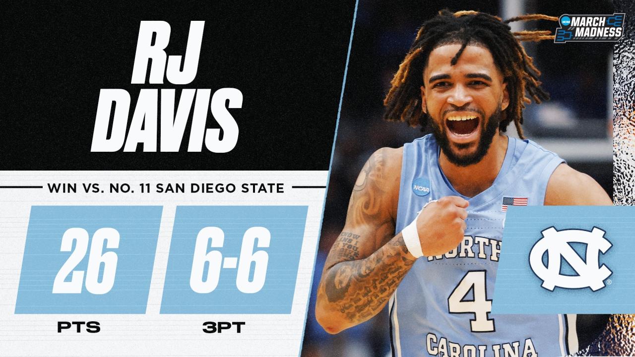 RJ Davis goes perfect from deep in UNC's First Four win