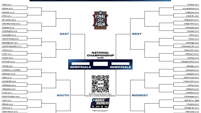 Here is the official, printable 2026 NCAA bracket for the March Madness men's tournament, along with the tournament schedule, dates and locations.