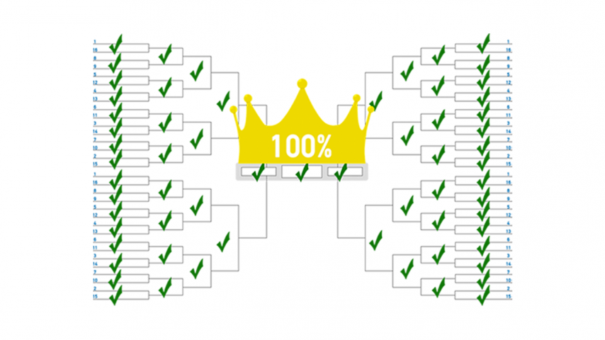 For more detail on how we got here, head over to our Perfect Bracket Tracker, where we show in real time how we got from tens of millions of brackets to one. We'll be tracking "center road" the rest of the tournament there as well.