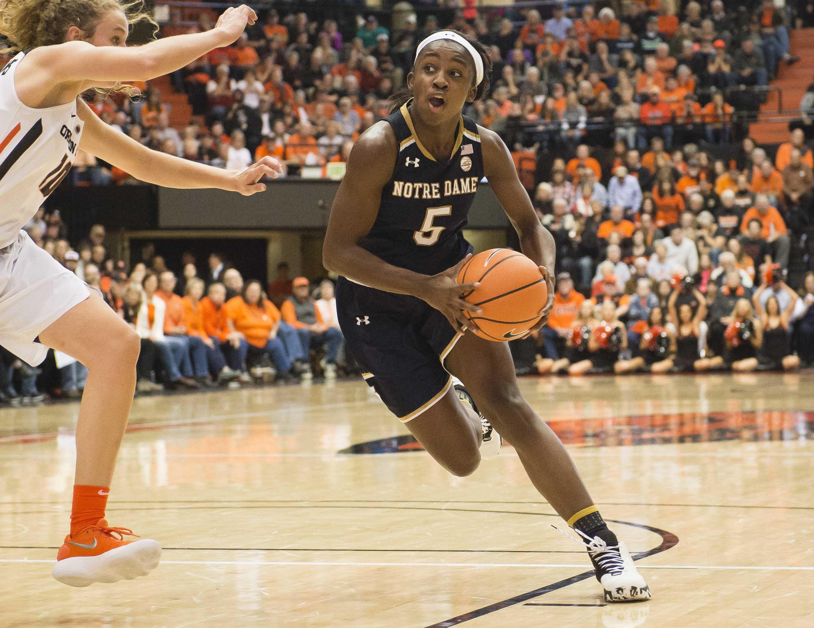 The road to the tournament title started with a 77-46 win over East Tennessee State on Nov. 24 as Ogunbowale recorded her first double-double of the season with 12 points and 10 rebounds. The Irish held ETSU to a season-low point total for the game, led 44-28 and halftime and then cruised to the win.
