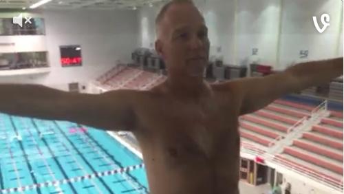 Video of basketball coach Mark Fox off the high dive: