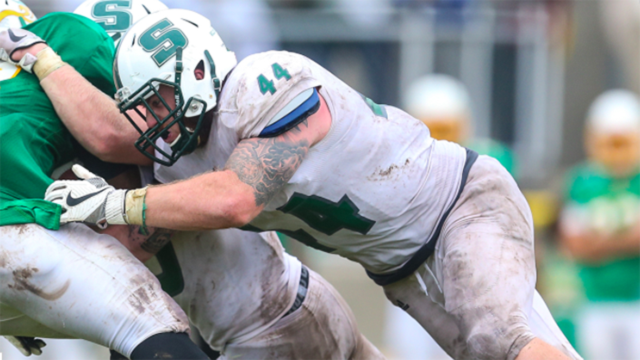 “We are very pleased with this year’s award winner,” said Harris. “The defensive numbers that Marcus was able to put up during his four years at Slippery Rock are amazing. We congratulate Marcus on winning the 2017 Gene Upshaw Award and wish him the very best in the future.”
