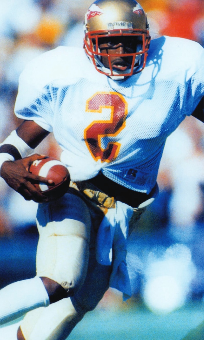 Sanders was a two-time unanimous All-America selection on the gridiron for the Seminoles, he was an outfielder who was a major base-stealing threat on the diamond, and he was also a member of Florida State's track and field team.