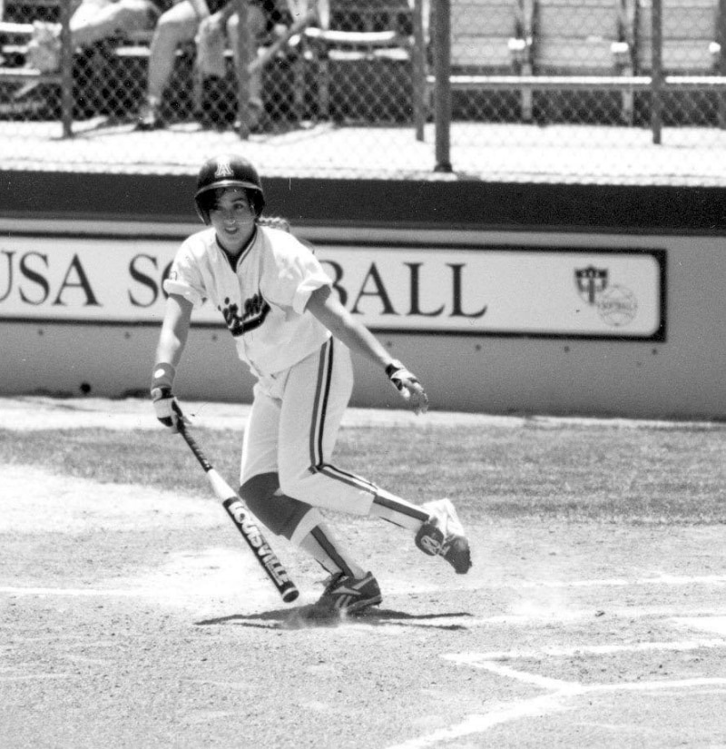 This is another name that fills the Arizona all-time records lists. And now of course, is the head coach at Arizona. She ranks second in career batting average at .446. Lowe was quick and is the Arizona all-time leader in stolen bases. In 2006, she was named All-American for the third consecutive year and was again at the top of the rankings in stolen bases, only caught twice. She was a member of the most-recent Arizona national championship team.
