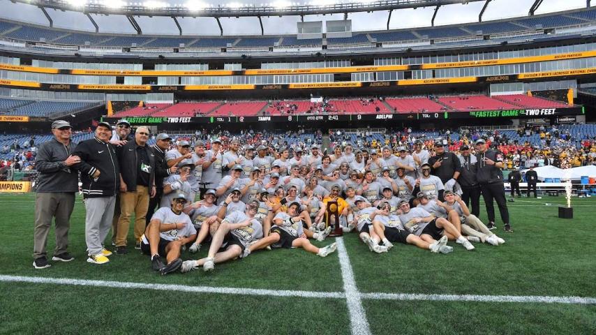 Ho hum, 2025 saw another DII men's lacrosse national championship for the Adelphi Panthers. The Panthers are the benchmark for the sport — now with nine national championships in DII men's lacrosse. Winners of the 2024 championship as well, it was the third time in program history that Adelphi went back-to-back. Here's the big what if: DII men's lacrosse went away from 1982-1992. Adelphi won the last title before the sport temporarily folded in 1981 and then won the first national championship when it restarted in 1993. How many more titles would Adelphi have? While that is an unanswerable question, what can be answered is yes, Adelphi will be looking for No. 3 in a row in 2026.