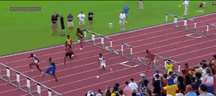 The 110 meter hurdles is a sprint, and this race was so fast that if you blinked, you might've missed it.