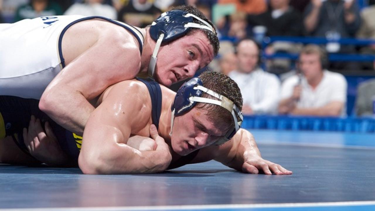 Keith Gavin (in white) was the 2008 174-pound champion at Pitt and is now the head coach for the Panthers.